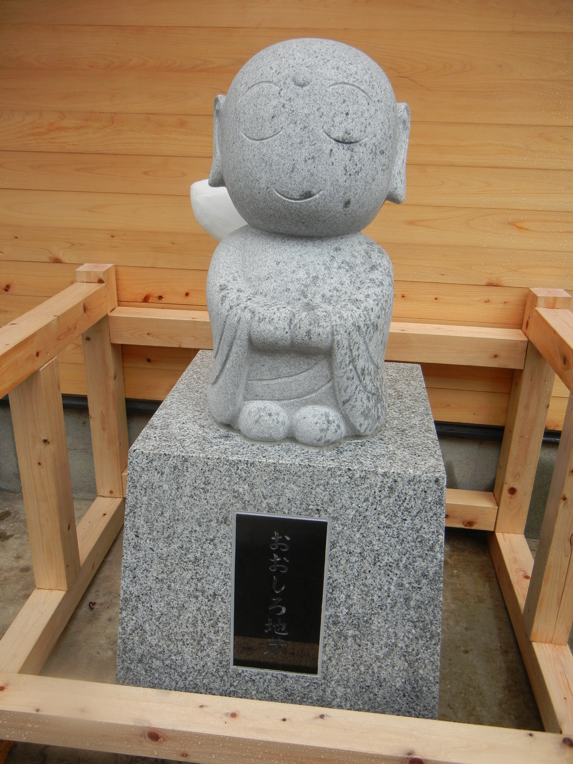 大城地蔵お披露目会しました! 蒲田大城通りのお地蔵様が、当店脇にいよいよ御目見えしました! 雨の中の除幕式でしたが、大勢の方が来てくださいました。 これは、最近被害が増えている、 オレオレ詐欺防止の為のものです。 お年寄りを守るために子狐がお地蔵様に化けたものなのだとか。 っくら可愛い地蔵様のおしりには真っ白な尻尾が! 尾が白い→尾を白→おおしろ→大城通り・・・と、言う訳らしいです♪ 地元商店会に安心と福を呼んで下さいます様に… 以前 雨で残念です。 最近 表取替えで、模様替え。